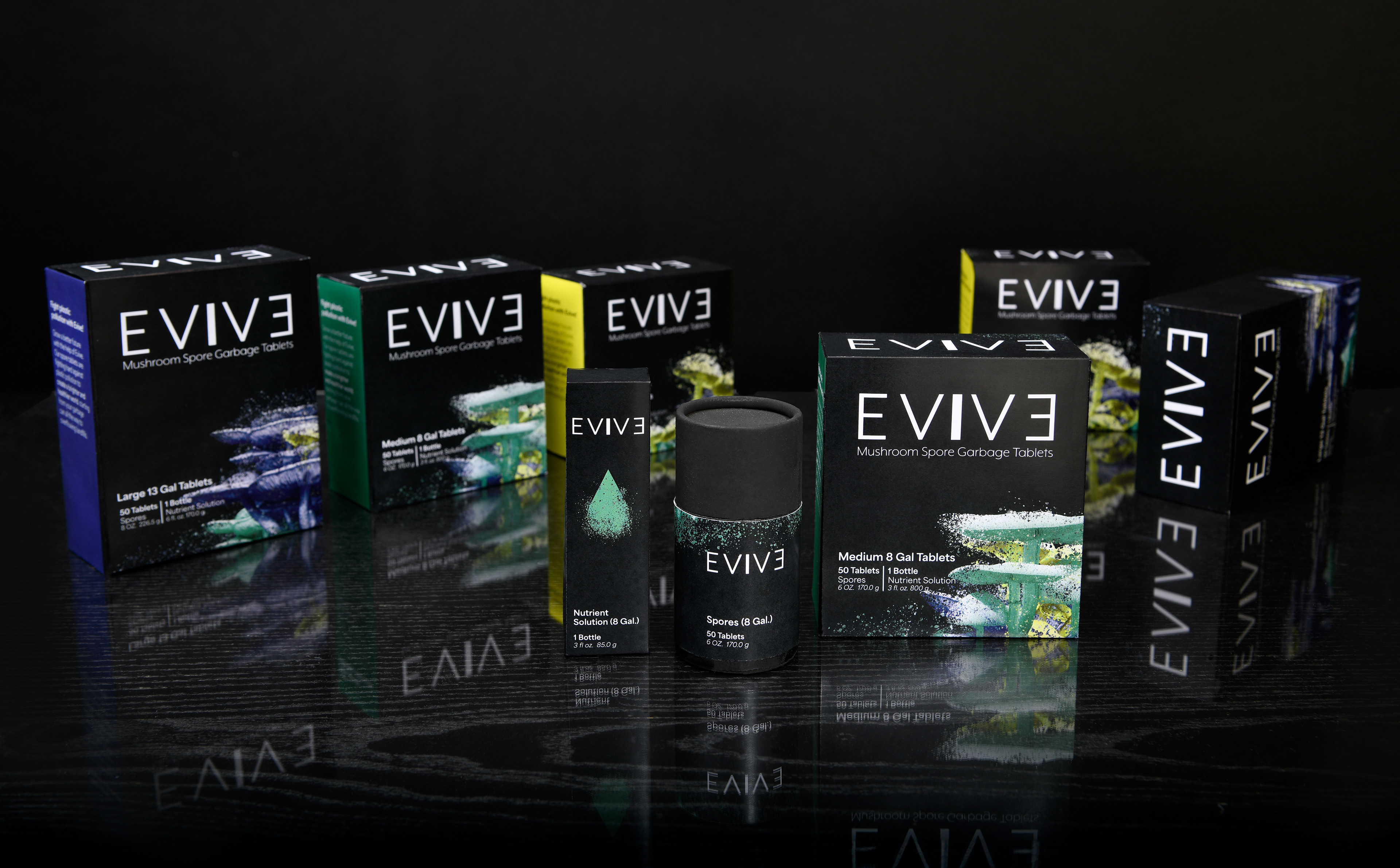 In a world riddled with plastic pollution, ecosystems across the globe are rapidly declining. Evive offers an effective solution by combining the remarkable performance qualities of nature and technology. Evive’s plastic eating mushroom spore tablets allow consumers to combat plastic pollution from home and reduce the amount of plastic entering the environment. From a single garbage bag to spanning across entire landfills, Evive will infiltrate and expel harmful plastics from global ecosystems.